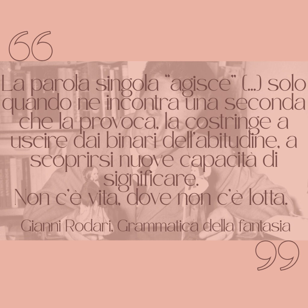 Tutte le citazioni sono tratte da Gianni Rodari, Grammatica della fantasia. Introduzione all’arte di inventare storie, Torino, Einaudi, 2013